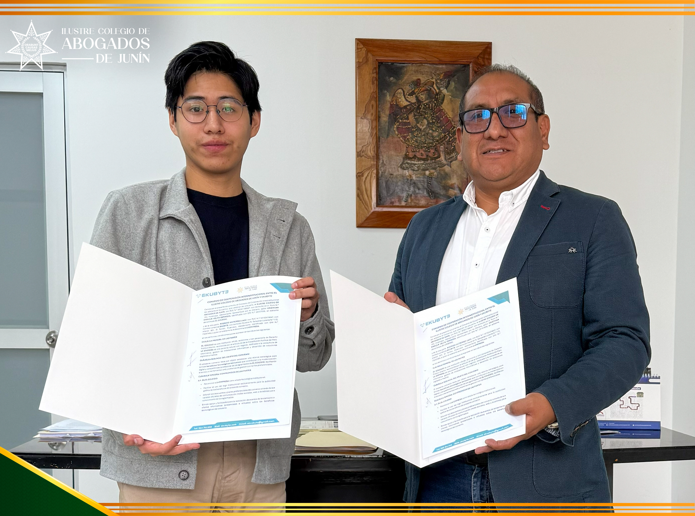 En un importante paso hacia la modernización y fortalecimiento del ejercicio profesional, el Ilustre Colegio de Abogados de Junín (CAJ) suscribió un Convenio de Colaboración Institucional con EKUBYTE, empresa especializada en soluciones digitales para profesionales y organizaciones.