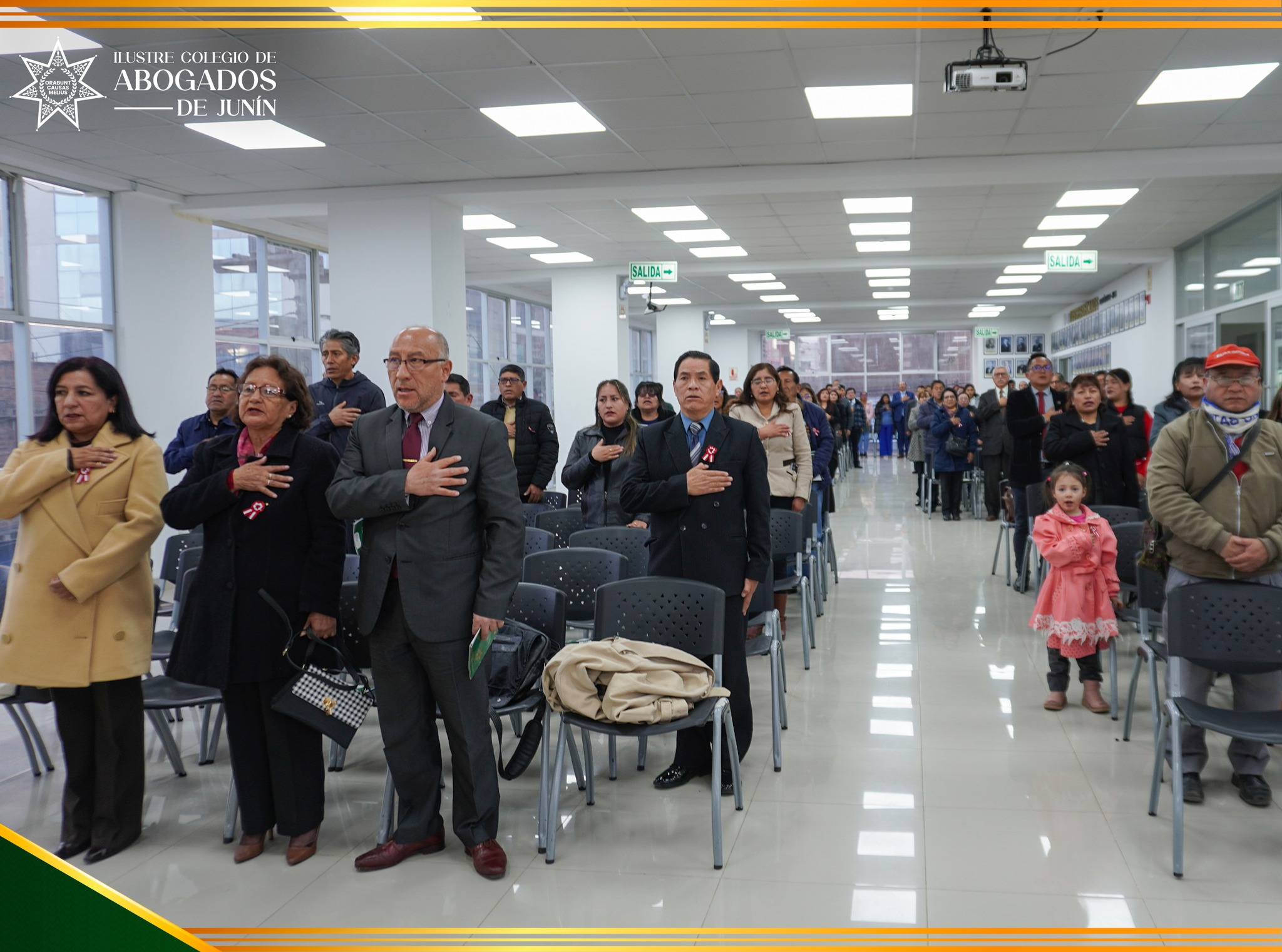 Entre ellas destaca la Asamblea General Ordinaria realizada el jueves 3 de julio, desarrollada en cumplimiento del Estatuto del Ilustre Colegio de Abogados de Junín. El auditorio institucional congregó a los agremiados, quienes participaron activamente en la jornada. Durante el evento se colocó la respectiva escarapela a los asistentes y se dio inicio a la actividad con la entonación del Himno Nacional del Perú.